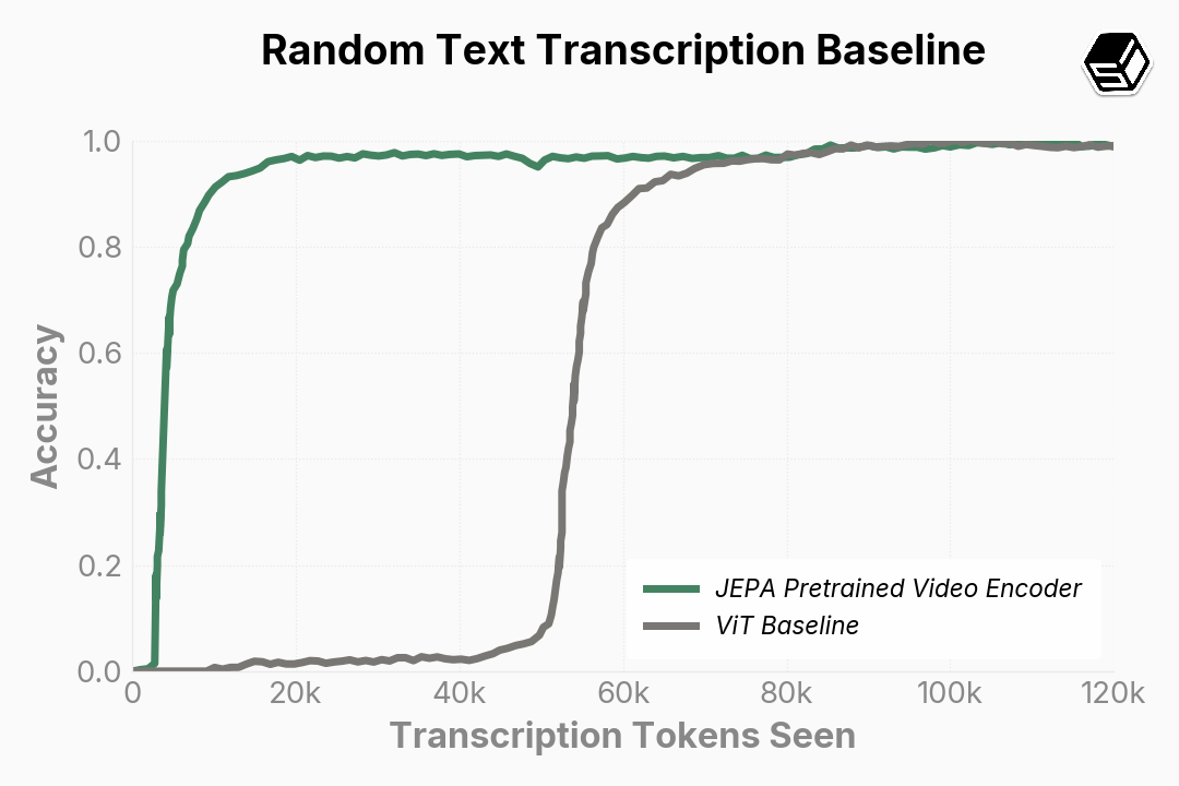 Figure 3: Accuracy on a transcription task. Baseline was a basic ViT over raw frame data, controlled for the number of transcription tokens seen (w/ similar FLOPs).